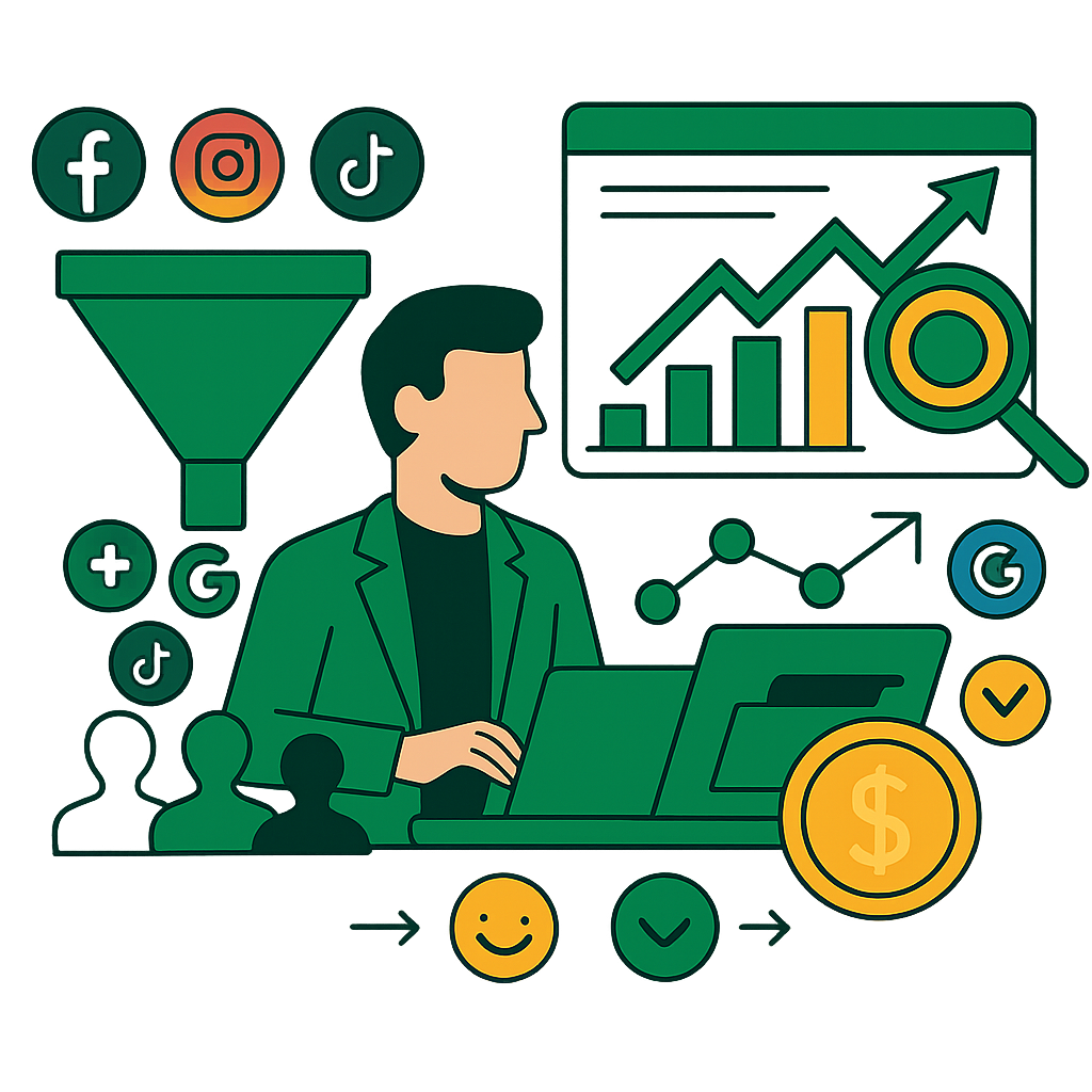 We build complete marketing funnels that guide customers from awareness to purchase using persuasive creatives, retargeting methods, offer structures, and conversion-focused strategies.